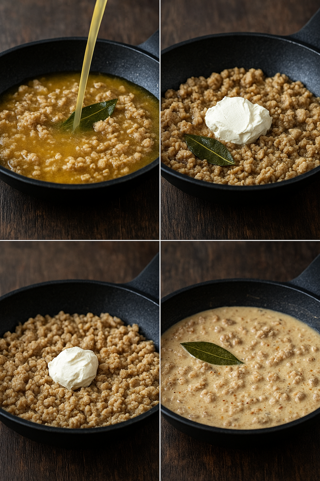 Knoblauch + Saucenmix dazu → 1–2 Min. weiterbraten